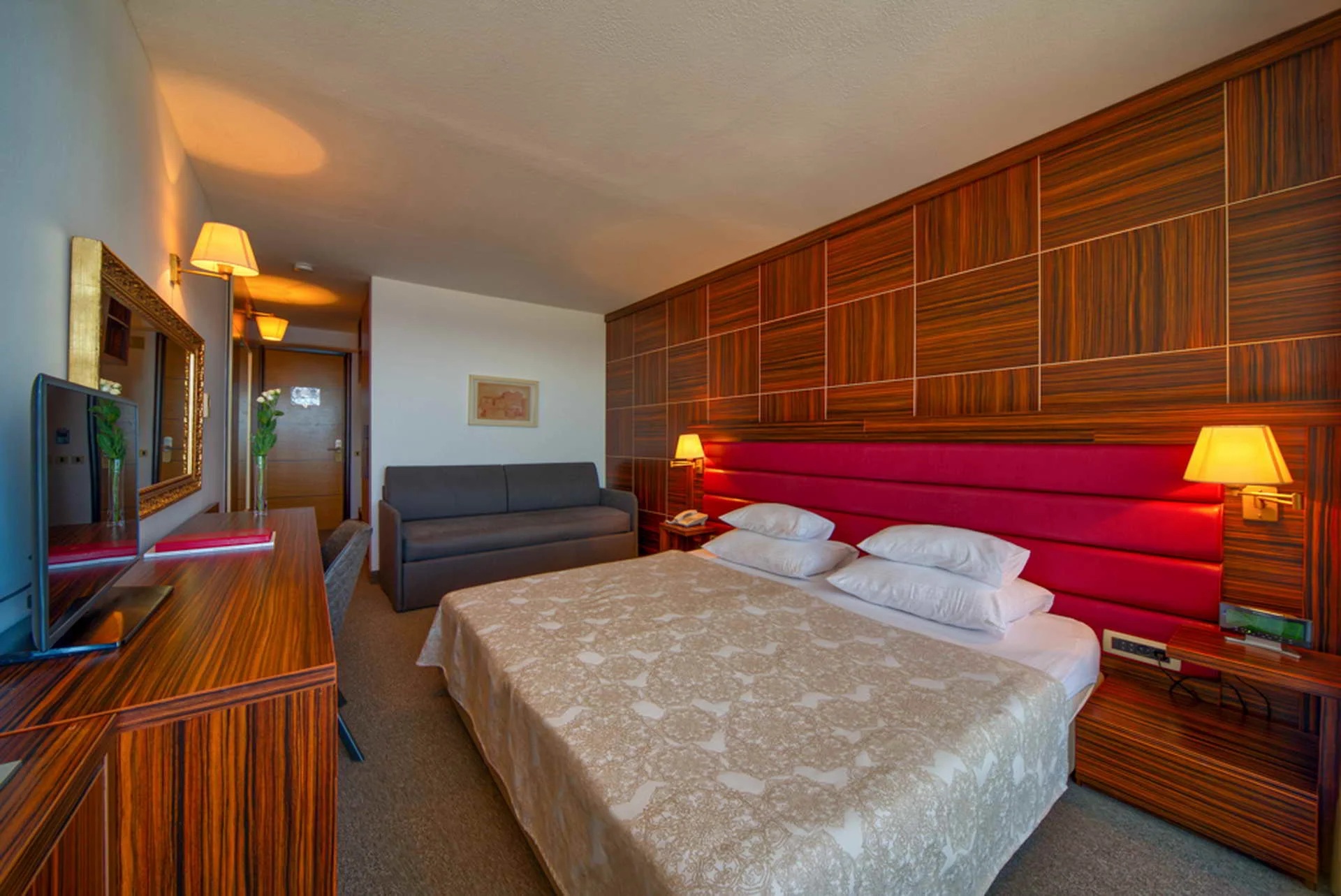 4 star rated resort hotel Palas is situated in Petrovac, a small coastal settlement embraced by rugged hills, mild Mediterranean climate, beaches that combine sand and pebble, and hospitable locals. The hotel itself is centrally located, encircled by orange and olive trees in a cove on the Petrovac Bay, with a view on two islands; Katic and Sveta Nedjelja. The landmarks of this small town make it the right fit for families, senior citizens, couples, and all who seek an idyllic environment for vacations.