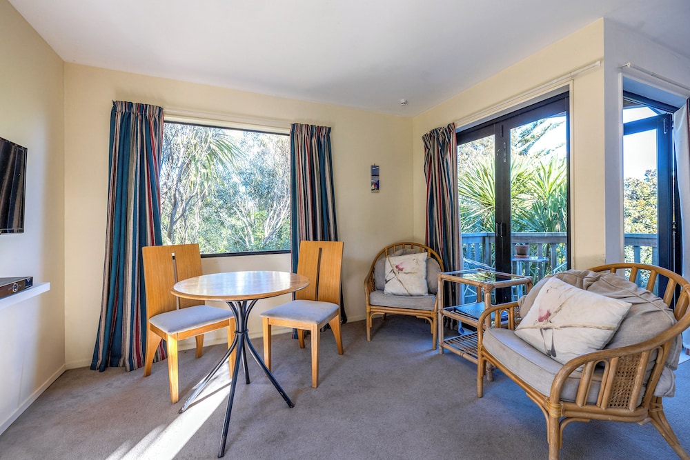 With a stay at Waiheke Island Motel in Waiheke Island (Ostend), you'll be within a 5-minute drive of Anzac Bay and Goldie Vineyard. This motel is 1.3 mi (2.1 km) from Wild on Waiheke and 1.5 mi (2.4 km) from Tantalus Estate. Make yourself at home in one of the 14 guestrooms featuring refrigerators and microwaves. LCD televisions with digital programming provide entertainment, while complimentary wireless internet access keeps you connected. Bathrooms feature showers with rainfall showerheads and complimentary toiletries. Conveniences include coffee/tea makers and irons/ironing boards, and housekeeping is provided daily. Distances are displayed to the nearest 0.1 mile and kilometer.