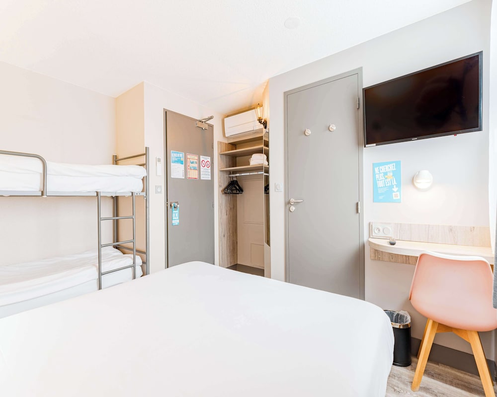 When you stay at KYRIAD DIRECT Tours Sud - Chambray Lès Tours in Chambray-les-Tours, you'll be in the business district, just steps from Chateaux de la Loire and Zone Commerciale de la Vrillonnerie. This hotel is 1.3 mi (2.1 km) from Pole Sante Leonard de Vinci and 2 mi (3.2 km) from Youpimom Amusement Center. Make yourself at home in one of the 61 air-conditioned rooms featuring flat-screen televisions. Complimentary wireless internet access keeps you connected, and cable programming is available for your entertainment. Private bathrooms with showers feature complimentary toiletries and hair dryers. Conveniences include desks and a turndown service, and housekeeping is provided daily. Distances are displayed to the nearest 0.1 mile and kilometer.