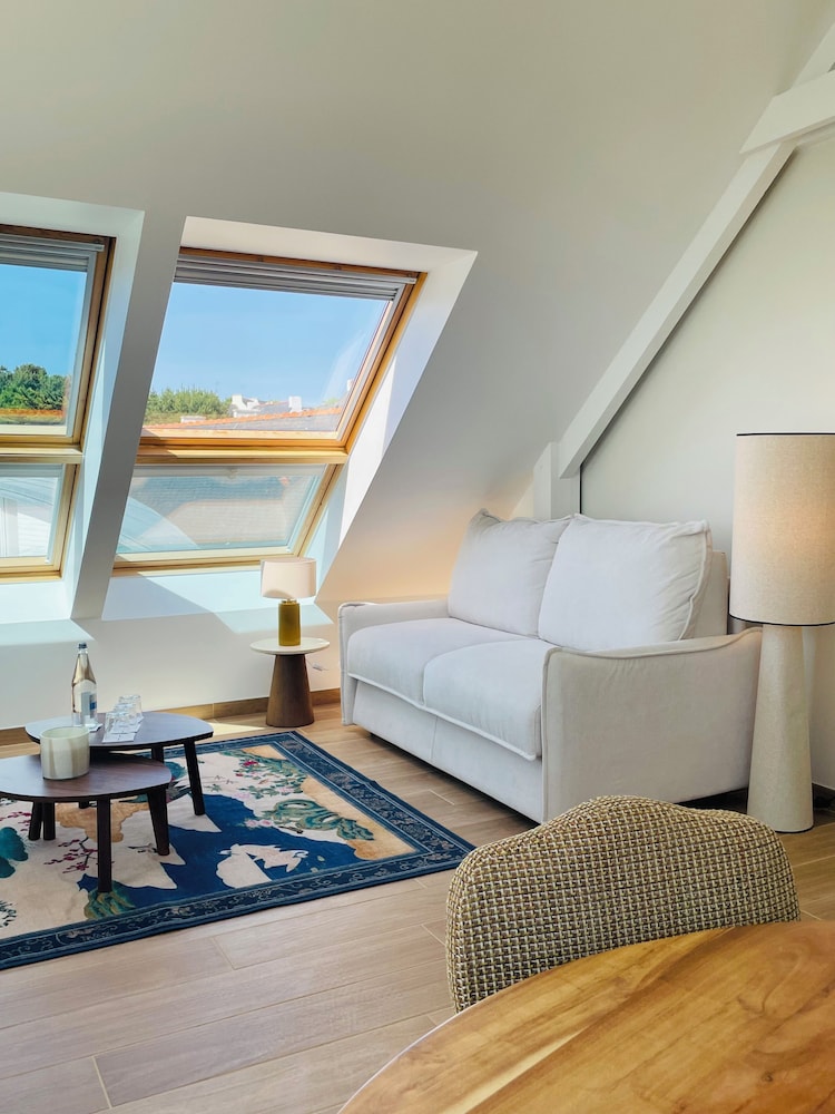 When you stay at Les Sables Blancs in Concarneau, you'll be on the beach, just steps from Bay of Biscay and Sables Blancs Beach. This beach hotel is 0.4 mi (0.7 km) from Cornouaille Beach and 0.4 mi (0.7 km) from Plage de Cornouaille. Make yourself at home in one of the 21 guestrooms featuring minibars and LED televisions. Complimentary wireless internet access keeps you connected, and satellite programming is available for your entertainment. Bathrooms have hair dryers and slippers. Conveniences include phones, as well as safes and desks. Distances are displayed to the nearest 0.1 mile and kilometer.