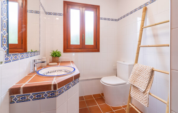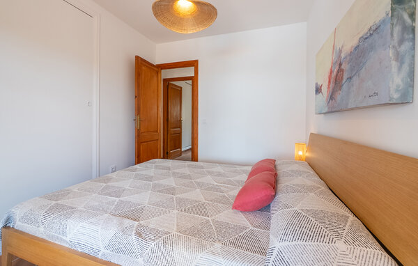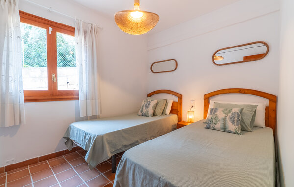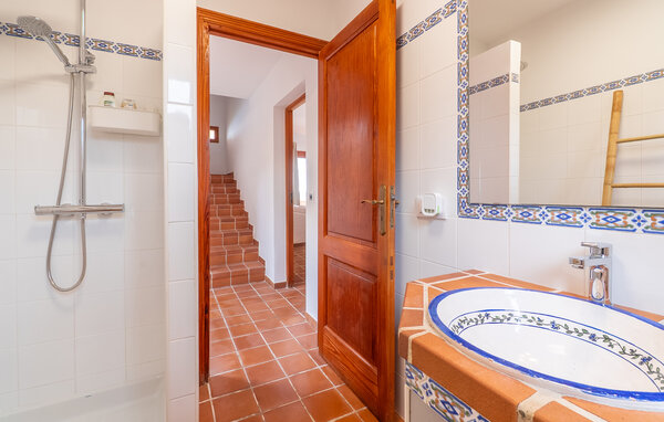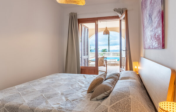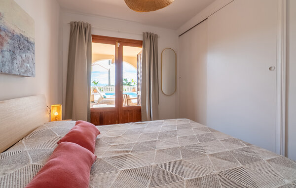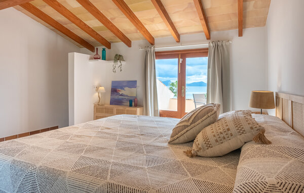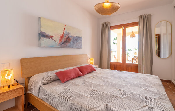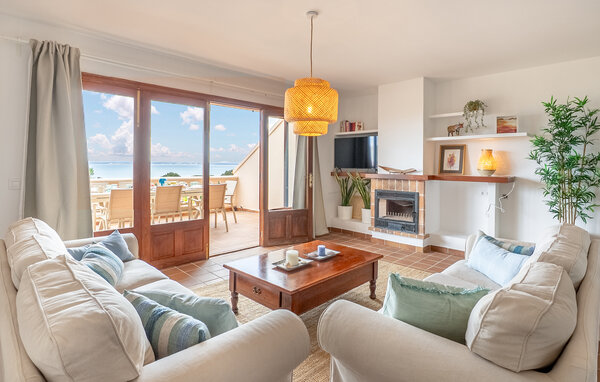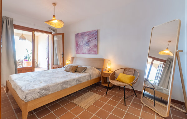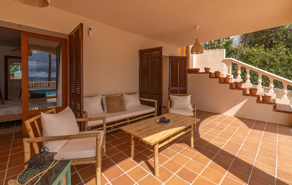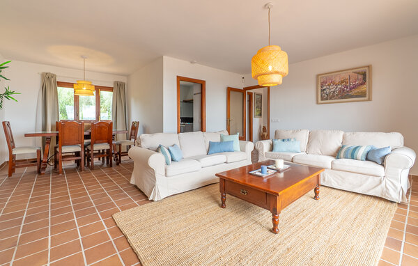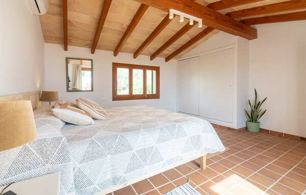 Look forward to a wonderful holiday in Mallorca and relaxing days by the sea. Inside, your holiday home welcomes you with modern yet cosy furnishings. Make yourself comfortable on the cosy sofas in the light-flooded living area and enjoy the view from the large windows. The bright kitchen invites you to prepare meals together, which you can then enjoy at the beautiful wooden dining table.