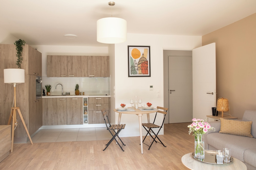 When you stay at Zenao Appart'hôtels Asnières-sur-Seine in Asnieres-sur-Seine, you'll be near the airport, within a 10-minute drive of La Défense and Paris La Défense Arena. This aparthotel is 4.5 mi (7.3 km) from Arc de Triomphe and 4.6 mi (7.4 km) from Champs-Élysées. Make yourself at home in one of the 14 guestrooms featuring espresso makers and flat-screen televisions. Complimentary wireless internet access keeps you connected, and digital programming is available for your entertainment. Conveniences include electric kettles and washing machines, and housekeeping is provided on request. Distances are displayed to the nearest 0.1 mile and kilometer.