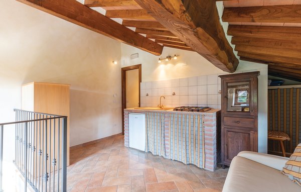 Right between Città di Castello and Cortona (22 km each) lies this rustic vacation home with private pool in the hills. Above the pool area, from the valley side of the house you enter the living room and kitchen-dining room, with bathroom with shower; from the mountain side, through separate ground-level entrances, you reach the three bedrooms (each with bathroom and open shower); and two galleries with double sofa bed one, with a single bed the other, also each with bathroom and shower. Crib on request. The cottage belongs to an agricultural farm located a little above the small village, where you can also rent an outbuilding with three more beds right next door (payment on the spot) and where other guest rooms are also rented. From the owner you can buy fresh vegetables, olive oil and honey on the spot; on request she will be happy to cook her guests local dishes (pasta dishes of all kinds, wild boar) in the small trattoria of the farm. The rural atmosphere is ideal for families looking to be close to nature. A small fishing lake is at guests' disposal. There are many excursions from here to the nearby Umbrian and Tuscan towns such as Città di Castello and Cortona (22 km), Arezzo, Perugia and Gubbio (about 50 km). 1 km S.Leo Bastia with grocery store, bar, post office; 10 km Trestina with stores of all kinds.