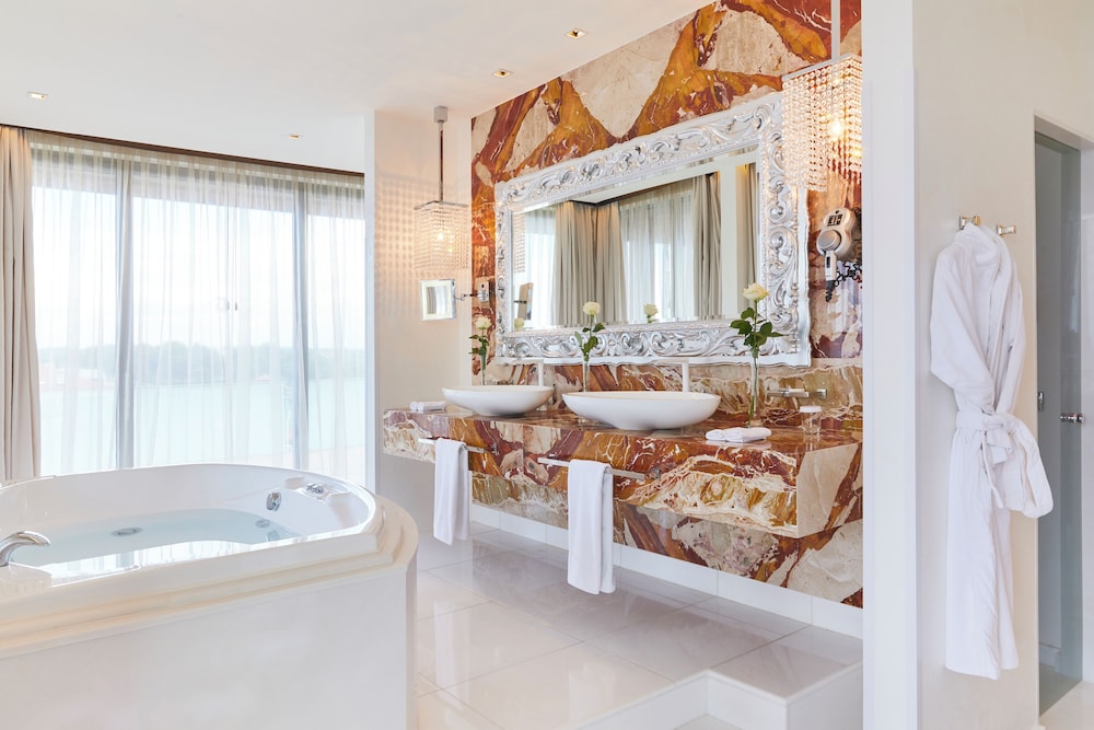 When you stay at Kempinski Hotel Adriatic in Umag, you'll be next to a golf course, within a 5-minute drive of Golf Club Adriatic and Port of Savudrija. This beach hotel is 2.3 mi (3.8 km) from Savudrian Lighthouse and 3.9 mi (6.2 km) from Katoro Beach. Make yourself at home in one of the 186 guestrooms featuring minibars and LED televisions. Rooms have private furnished balconies or patios. Complimentary wired and wireless internet access keeps you connected, and satellite programming provides entertainment. Private bathrooms with separate bathtubs and showers feature deep soaking bathtubs and rainfall showerheads. Distances are displayed to the nearest 0.1 mile and kilometer.