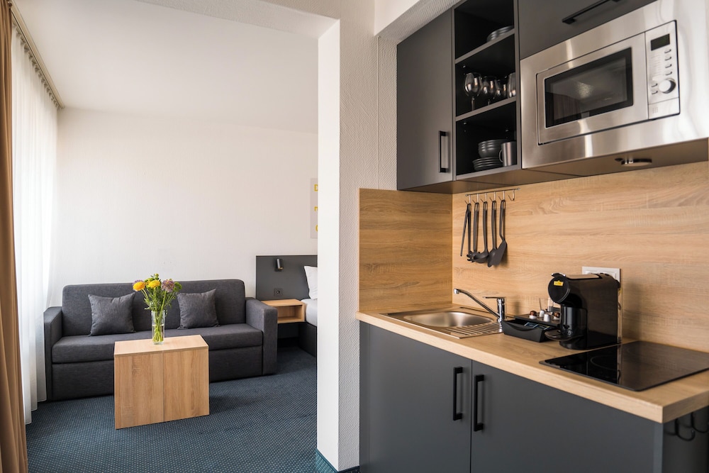 A stay at Apartments an der Kö places you in the heart of Düsseldorf, just a 4-minute walk from Konigsallee and within a 5-minute drive of Düsseldorf Christmas Market. This aparthotel is 3.8 mi (6.1 km) from Messe Düsseldorf and 0.4 mi (0.6 km) from Savoy Theater. Make yourself at home in one of the 44 guestrooms, featuring kitchenettes with refrigerators and stovetops. 50-inch flat-screen televisions with cable programming provide entertainment, while complimentary wireless internet access keeps you connected. Conveniences include desks and microwaves, and housekeeping is provided on request. Distances are displayed to the nearest 0.1 mile and kilometer.