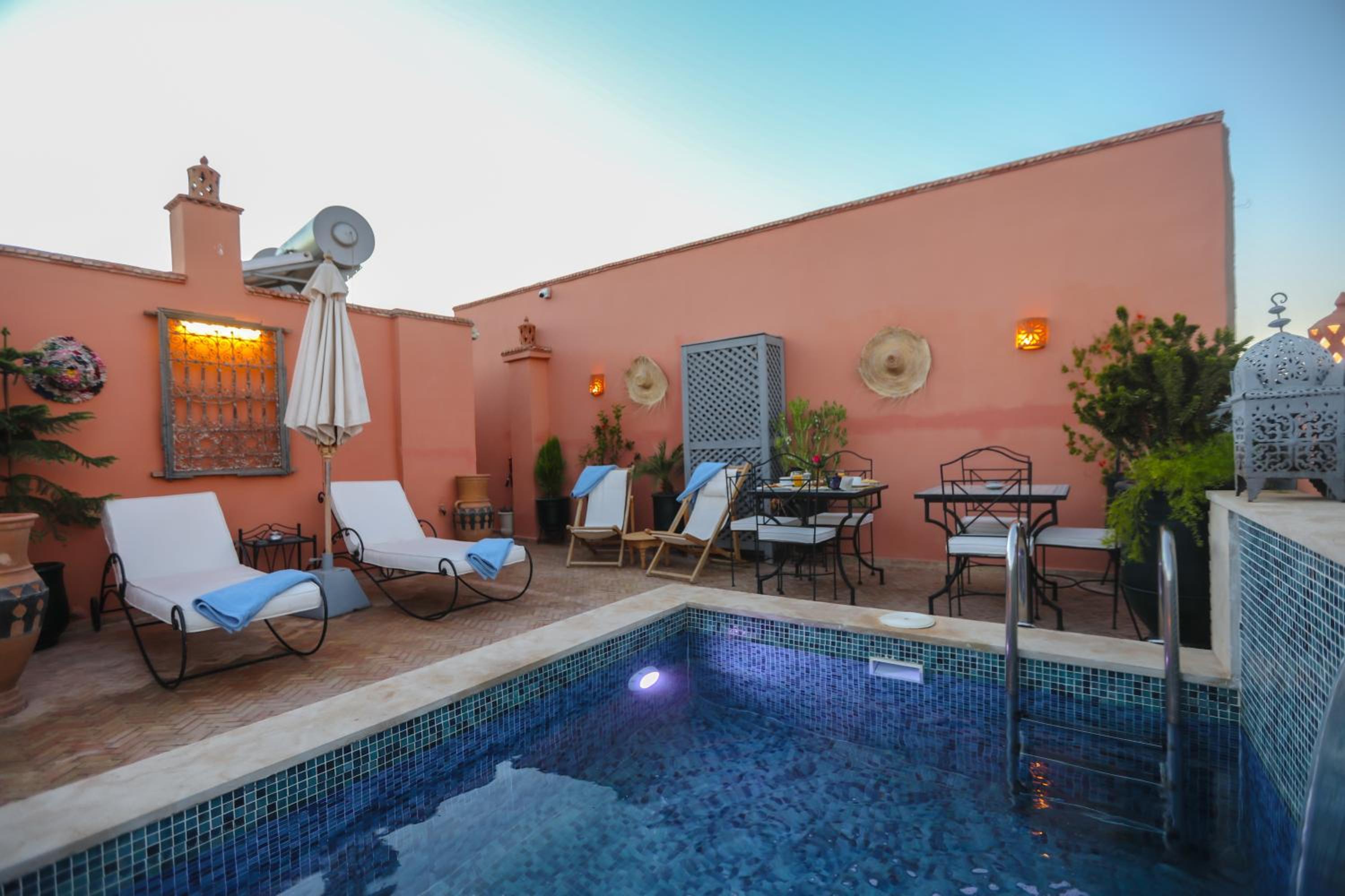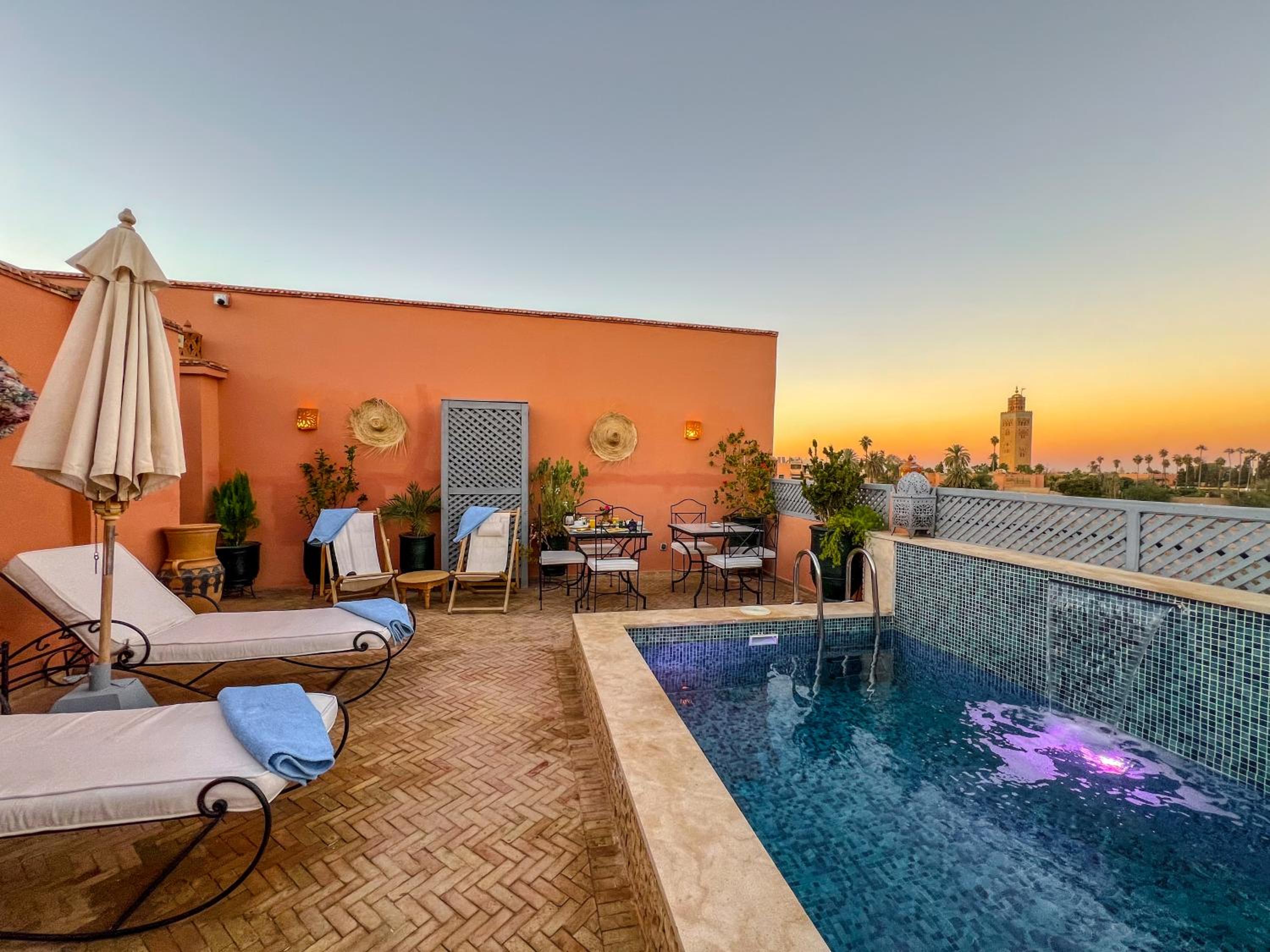 Luxurious Terrace: Enjoy stunning views and relaxation on the terrace of Riad Beni Sidel, perfect for unwinding after a day of exploring the city.