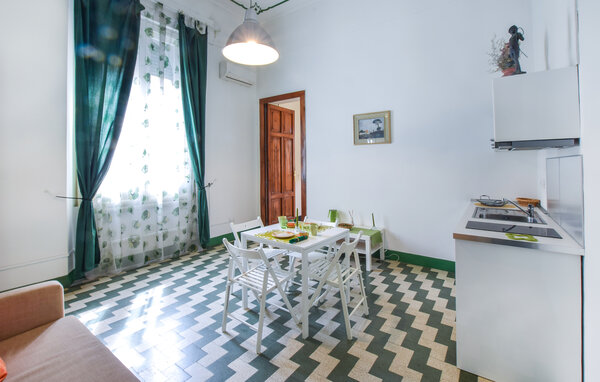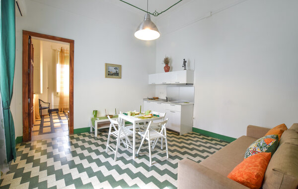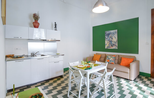 This tastefully furnished holiday apartment combines modern comfort with Mediterranean charm. Prepare your meals in the open-plan kitchenette and enjoy them at the cosy dining table. Relax in the cosy living room with an exciting book or reflect on your experiences over a glass of wine.