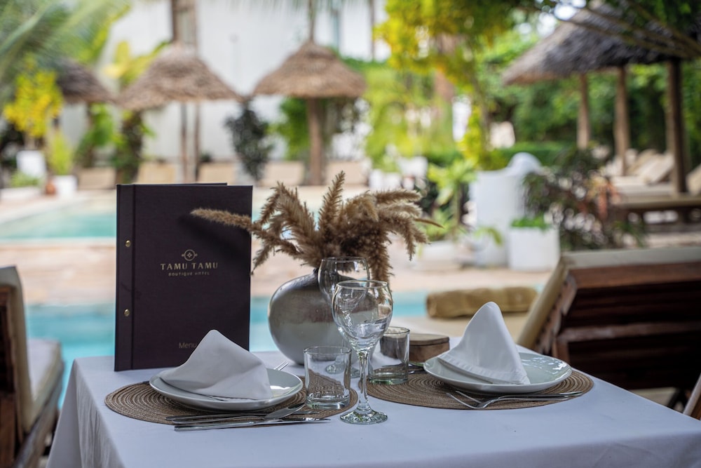 In the vicinity of the public beach lies the hotel Tamu Tamu Boutique Hotel***. There is a shuttle service between the hotel and the airport. To reach the beach a shuttle is provided. The seasonally air-conditioned halal hotel is equipped with a 24h reception (check-in is possible around the clock), a lobby, Wi-Fi, internet access, a first aid kit, parking spaces (limited) as well as a TV lounge with satellite TV. In the outdoor area you will find a garden as well as a pool (open all year), where pool towels are available for free. There is also a separate children's pool. Furthermore, outside you can find a terrace. Your valuables can be stored in the hotel safe. In addition, the hotel Tamu Tamu Boutique Hotel*** is video-monitored 24h a day. For very young guests, cots can also be provided. There is also a laundry service. Ironing equipment can be borrowed at the hotel. If necessary, you can contact the medical centre. The energy supply is 220 Volts. At the hotel reception, tickets are offered for excursions in the area. For guests on their honeymoon, the hotel has special offers such as a romantically-decorated room, personalised rooms/articles, special honeymoon packages, romantic dishes in the restaurant, a present or flowers in the room. In your hotel, a lot of focus is placed on sustainability. This includes among others environmentally-friendly cleaning. For water may incur extra charges at the hotel. The hotel requires that all guests pay a deposit upon arrival. Euro/Master Card and Visa are accepted as means of payment. Catering As catering services the hotel offers half board. Breakfast is offered from the buffet. Enjoy your lunch as a set meal. Dinner is served as a set meal or à la carte. All Inclusive Light includes local alcoholic beverages. Your physical well-being is catered for by a restaurant (gluten-free dishes). A picnic bench can be used by guests for self-catering. Sports & Leisure For your wellbeing the hotel also offers massages. In terms of adult entertainment, shows are organized in the evening and there is a games room available to use. Additional information Larger groups of young people under the age of 25 are not allowed in this property, as this is a hotel especially for families. The hotel staff speak English and Polish.