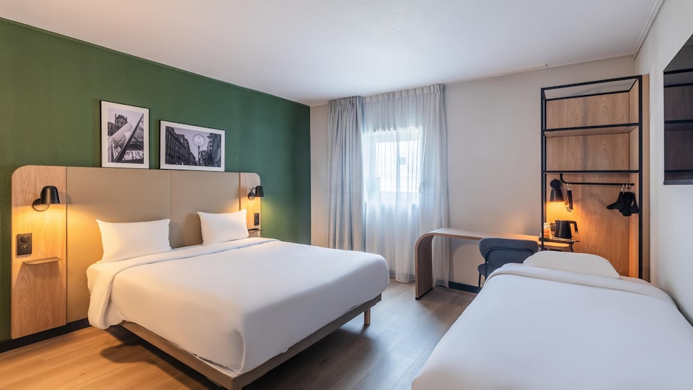 When you stay at Campanile Paris CDG Airport Villepinte in Roissy-en-France, you'll be near the airport, within a 15-minute drive of Stade de France and Villepinte Exhibition Centre. This hotel is 10.7 mi (17.2 km) from Canal Saint-Martin and 12.5 mi (20.1 km) from Parc Astérix. Make yourself at home in one of the 269 air-conditioned rooms featuring flat-screen televisions. Complimentary wireless internet access keeps you connected, and satellite programming is available for your entertainment. Private bathrooms have deep soaking bathtubs and complimentary toiletries. Conveniences include phones, as well as desks and complimentary newspapers. Distances are displayed to the nearest 0.1 mile and kilometer.