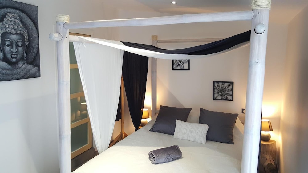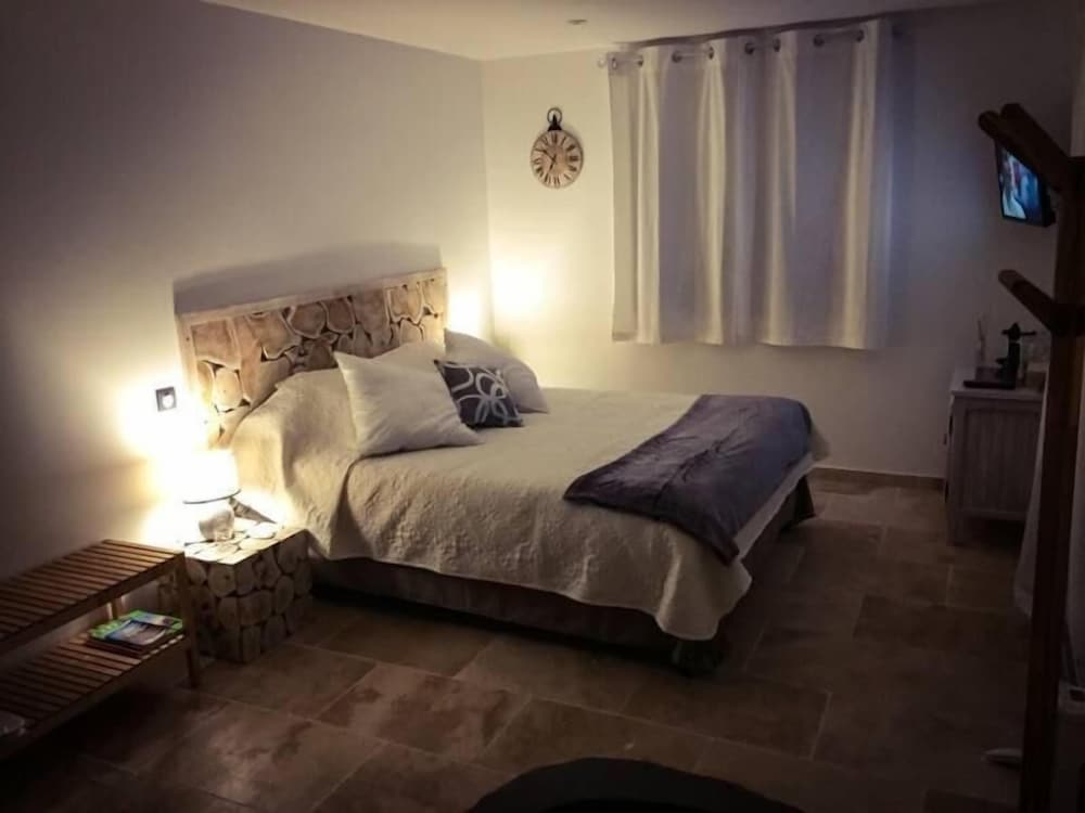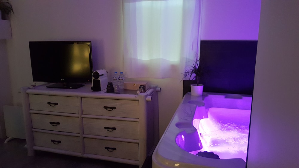 Located in Six-Fours-les-Plages, Au Charme de Pépiole is in a rural location, within a 15-minute drive of Dolce Fregate Provence Golf Course and Port of Toulon. This guesthouse is 4.4 mi (7 km) from Charmettes Beach and 7.9 mi (12.7 km) from Toulon Beach. Treat yourself to a stay in one of the 2 individually decorated guestrooms, featuring private hot tubs and flat-screen televisions. Complimentary wireless internet access keeps you connected, while MP3 docking stations help you enjoy your music in the comfort of your room. Conveniences include refrigerators and coffee/tea makers, and housekeeping is provided daily. Distances are displayed to the nearest 0.1 mile and kilometer.
