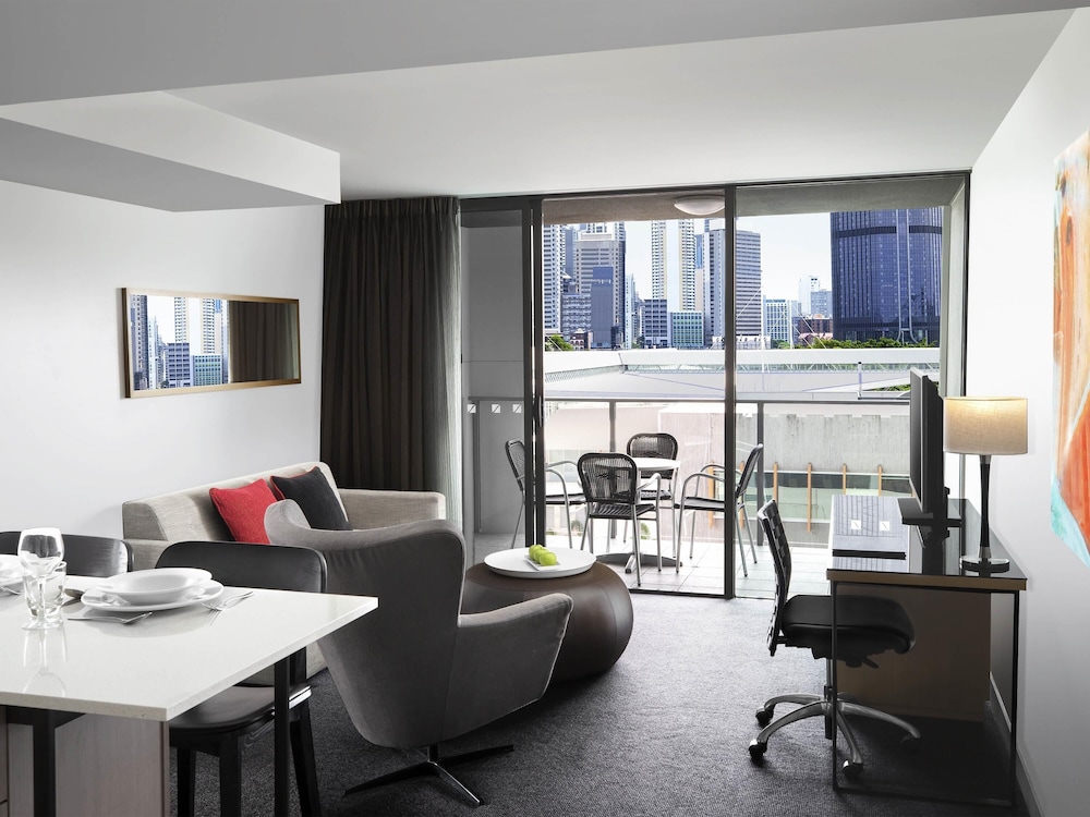 With a stay at Mantra South Bank Brisbane in Brisbane (South Brisbane), you'll be within a 5-minute walk of South Bank Parklands and Brisbane Convention and Exhibition Centre. This luxury hotel is 0.3 mi (0.4 km) from Queensland Performing Arts Centre and 0.7 mi (1.1 km) from Queen Street Mall. Make yourself at home in one of the 161 air-conditioned rooms featuring refrigerators and LCD televisions. Wireless internet access (surcharge) keeps you connected, and cable programming is available for your entertainment. Bathrooms feature showers, complimentary toiletries, and hair dryers. Conveniences include phones, as well as safes and desks. Distances are displayed to the nearest 0.1 mile and kilometer.