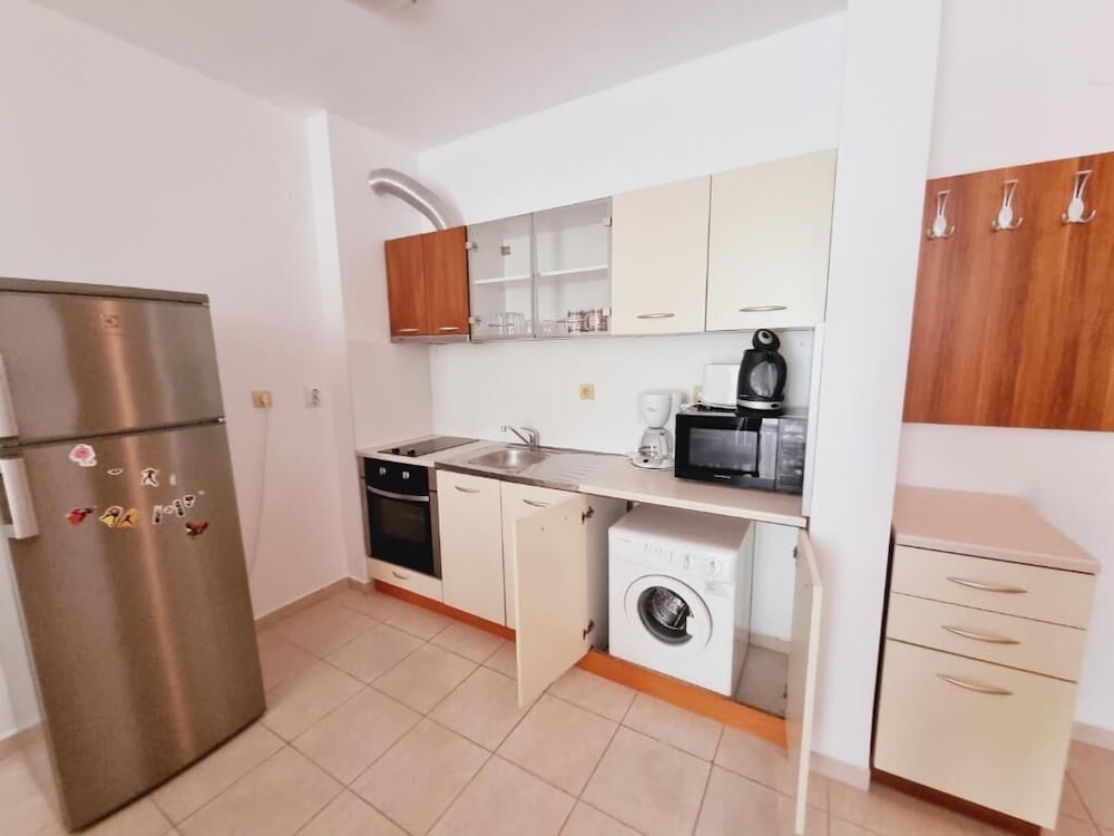 With a stay at Lazur Apartments in Nessebar, you'll be within a 15-minute drive of Sunny Beach and Aqua Paradise. This aparthotel is 0.2 mi (0.4 km) from Sveti Vlas New Beach and 0.3 mi (0.4 km) from Dinevi Marina. Make yourself at home in one of the 5 air-conditioned rooms featuring kitchens with full-sized refrigerators/freezers and ovens. Rooms have private balconies. Complimentary wireless internet access is available to keep you connected. Conveniences include separate sitting areas and microwaves, and housekeeping is provided daily. Distances are displayed to the nearest 0.1 mile and kilometer.