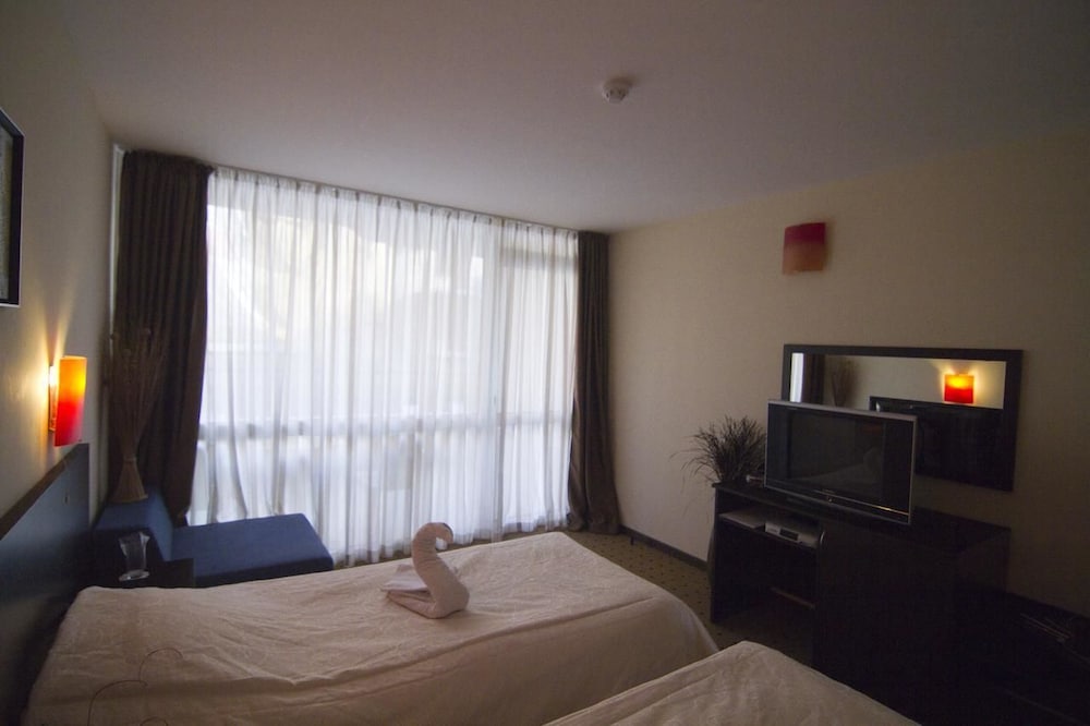 When you stay at Tropics Hotel in Nessebar, you'll be near the beach, within a 15-minute drive of Sunny Beach and Aqua Paradise. This hotel is 0.3 mi (0.5 km) from Sveti Vlas Central Beach and 0.9 mi (1.5 km) from Dinevi Marina. Make yourself at home in one of the 40 air-conditioned guestrooms. Rooms have private balconies. Complimentary wireless internet access keeps you connected, and satellite programming is available for your entertainment. Private bathrooms with showers feature complimentary toiletries and hair dryers. Distances are displayed to the nearest 0.1 mile and kilometer.