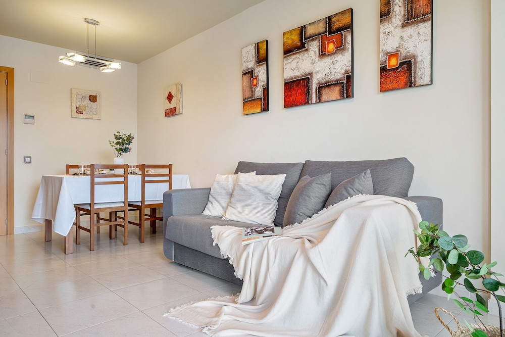 When you stay at this apartment in Vila-Seca, you'll be near the beach, within a 15-minute drive of PortAventura World and Cala Font Beach. This apartment is 10.1 mi (16.3 km) from Cambrils Beach and 5.8 mi (9.3 km) from Tarragona Port. Make yourself comfortable in this apartment, featuring a kitchen with a full-sized refrigerator/freezer and an oven. There's a private furnished balcony. A flat-screen television with satellite programming provides entertainment, while complimentary wireless internet access keeps you connected. Conveniences include a microwave and a coffee/tea maker. Distances are displayed to the nearest 0.1 mile and kilometer.