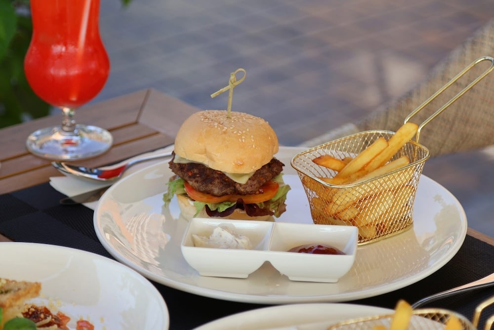 Featured amenities include dry cleaning/laundry services, a 24-hour front desk, and luggage storage. A roundtrip airport shuttle is provided for a surcharge (available 24 hours), and limited parking is available onsite. Don't miss out on recreational opportunities including an outdoor pool and a 24-hour fitness center. Enjoy a meal at the restaurant or snacks in the coffee shop/cafe. The hotel also offers room service (during limited hours). Unwind at the end of the day with a drink at the bar/lounge or the poolside bar. Buffet breakfasts are available daily from 6:30 AM to 10:30 AM for a fee.You'll be asked to pay the following charges at the property. Fees may include applicable taxes: